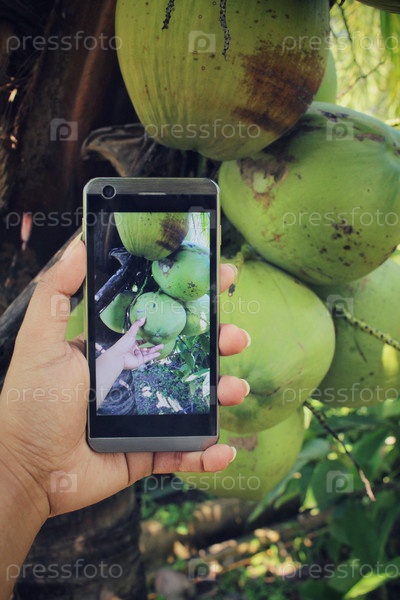 Принимая Фото кокосового дерева с смарт-телефон