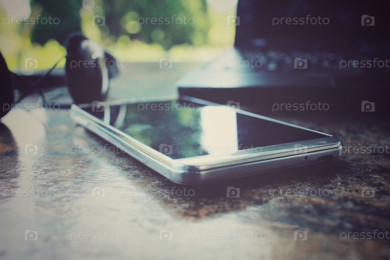 Ноутбук с смарт-телефона и наушников
