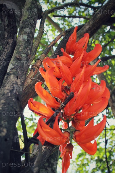 Гвинее рептилия - оранжевые цветы