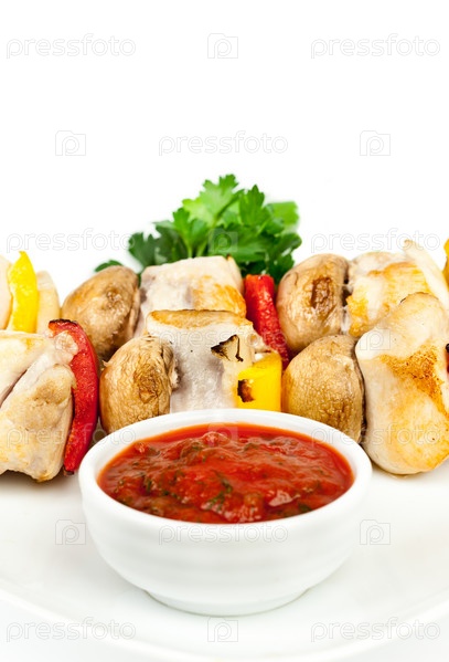 Куриный шашлык с соусом, крупный план