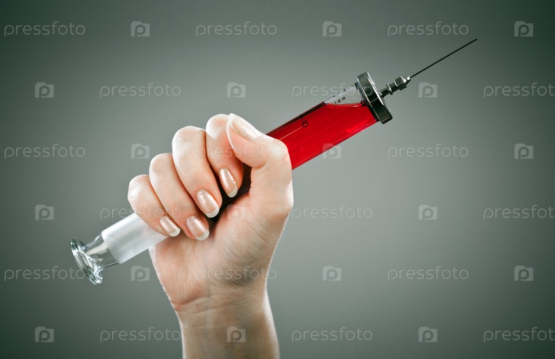 Шприц с кровью в руке