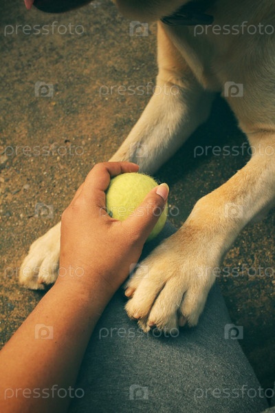 Ноги собак Лабрадор, играя мячом