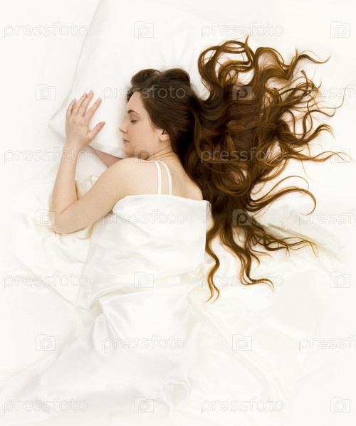 Вид красивой молодой женщины, лежащей в постели и отдыхающей