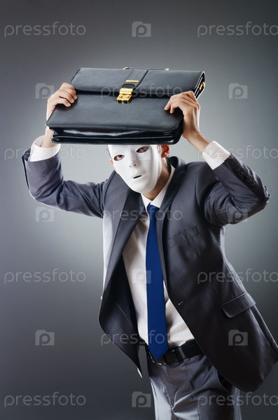 Бизнесмен в маске и с портфелем в руках
