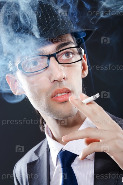 Молодой мужчина в шляпе курит сигарету