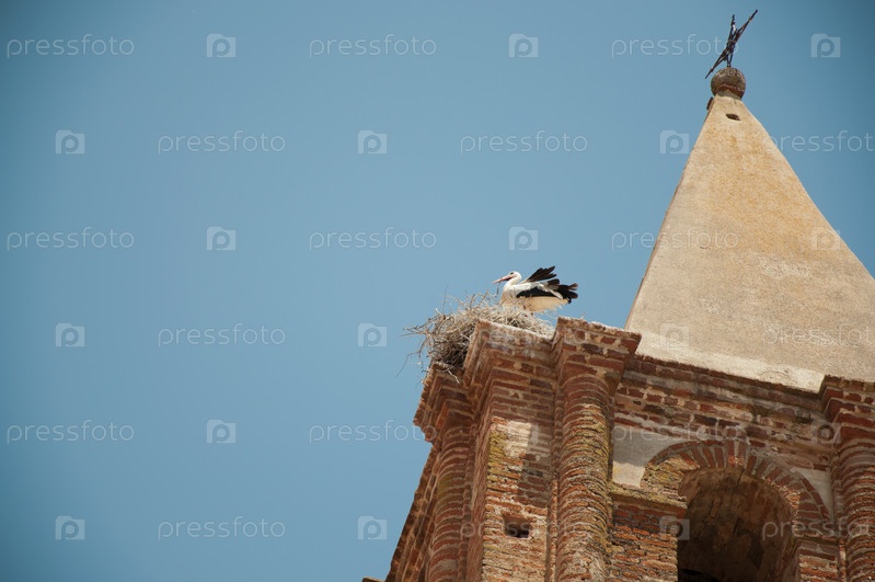 Аист в гнезде на крыше церкви (Эстремадура, Испания)