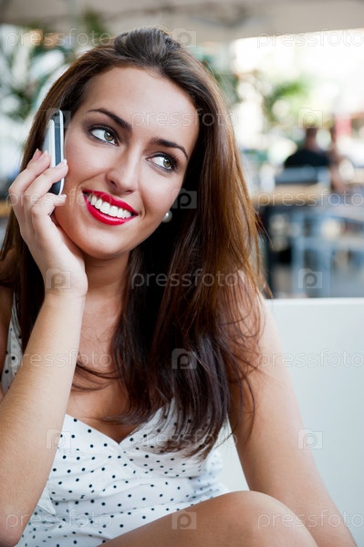 Портрет красивой молодой женщины с телефоном