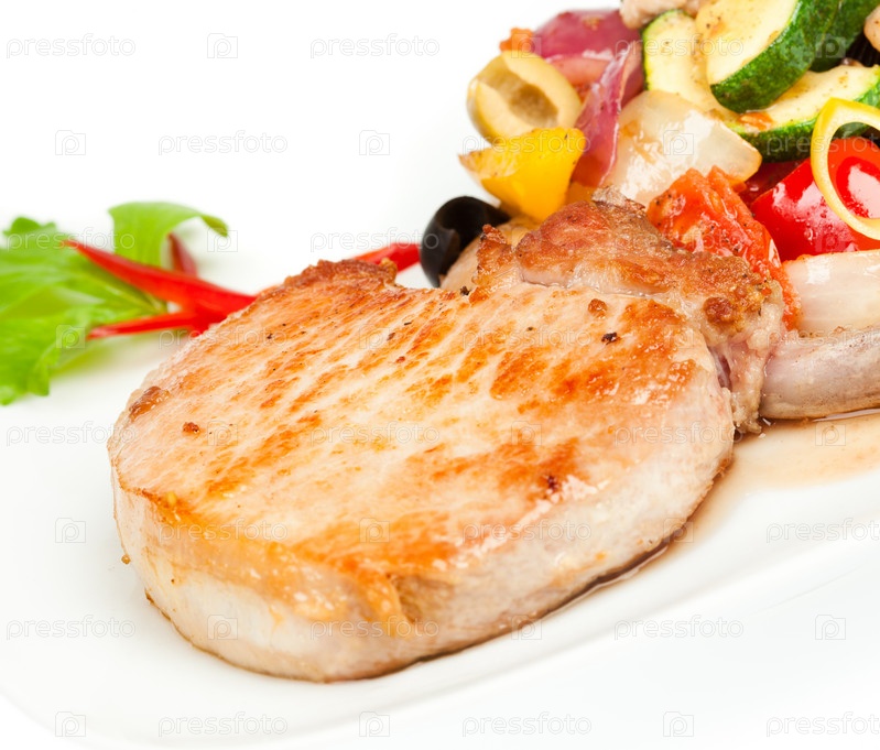 Стейк из свинины с овощами, крупный план