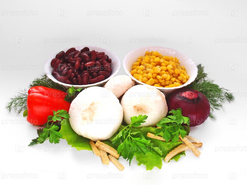 Пищевые ингредиенты на белом фоне. Овощи для салата