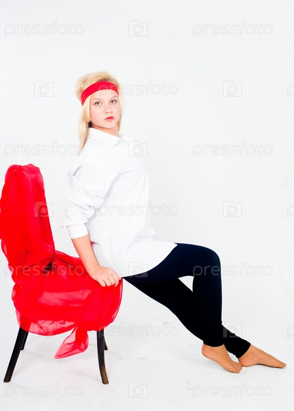 Молодая девушка позирует на светлом фоне