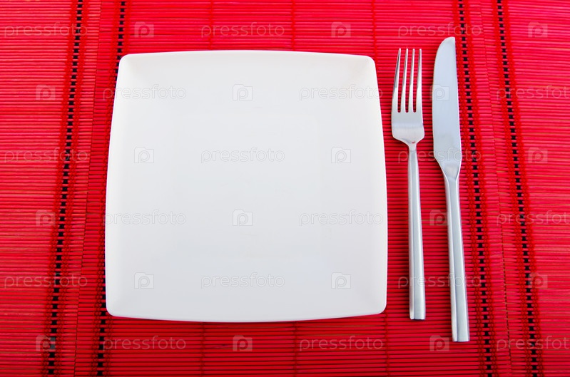 Столовые приборы на красной бамбуковой салфетке