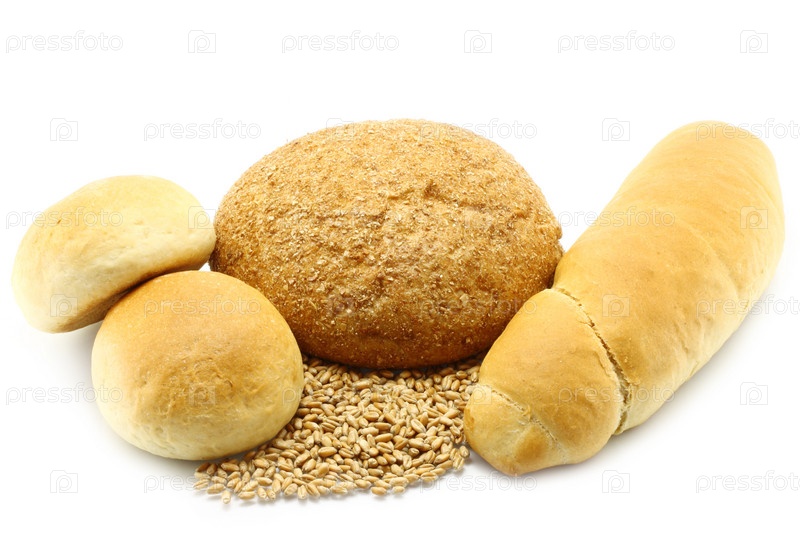 Хлеб и зерно на белом фоне