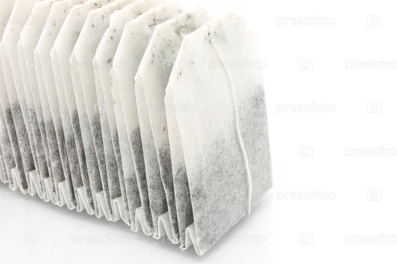 Чайные пакетики на белом фоне
