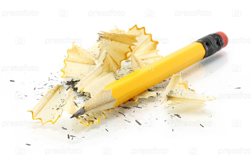 Карандаш в стружках на белом фоне