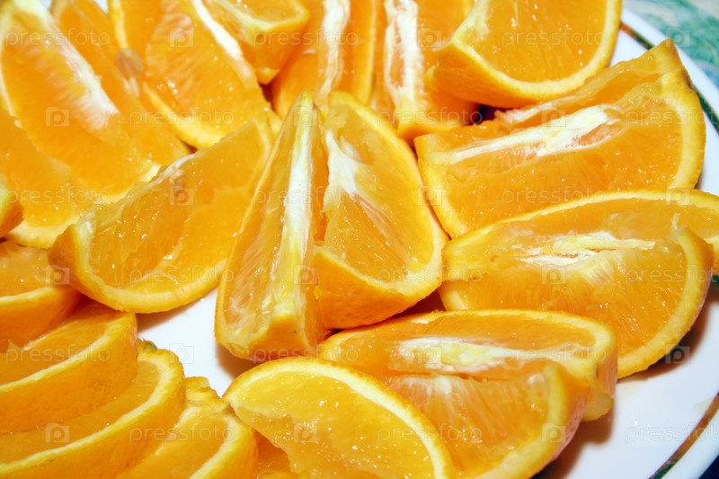 Апельсиновые дольки на тарелке