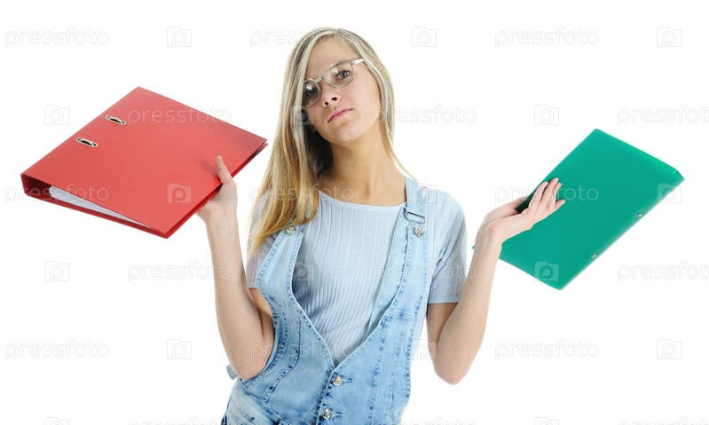 Молодая женщина с папками для документов. Изолирована на белом фоне