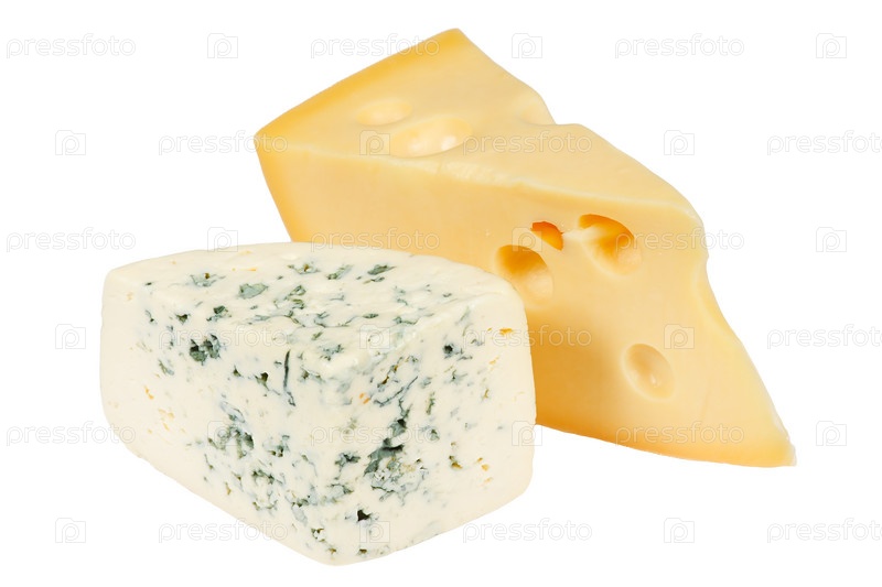 Два вида сыра на белом фоне