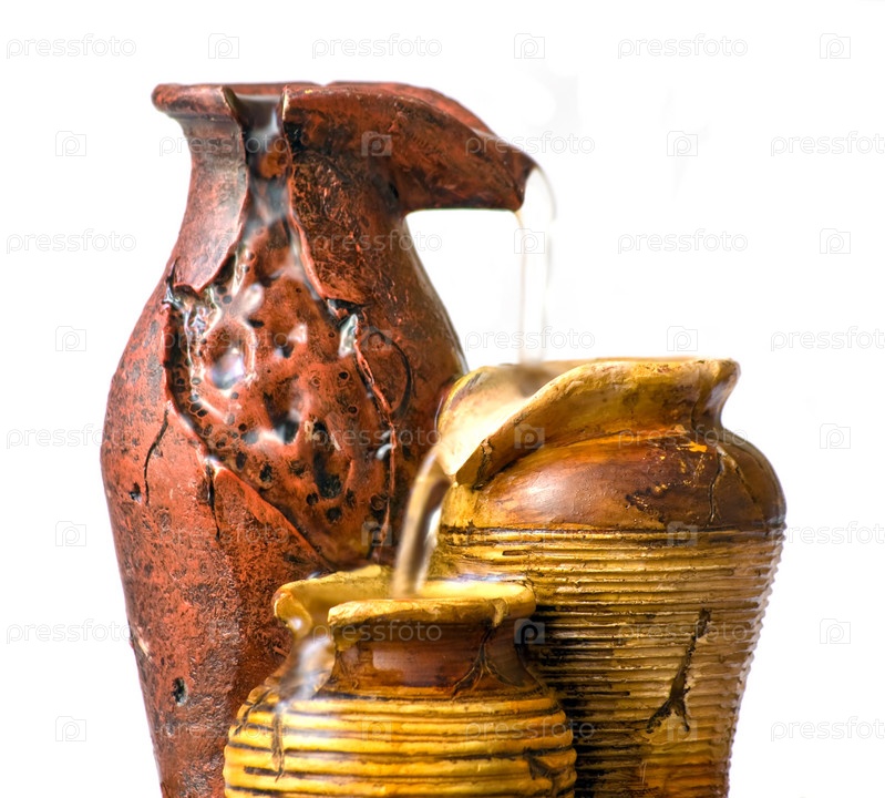 Фонтан в виде кувшинов на белом фоне