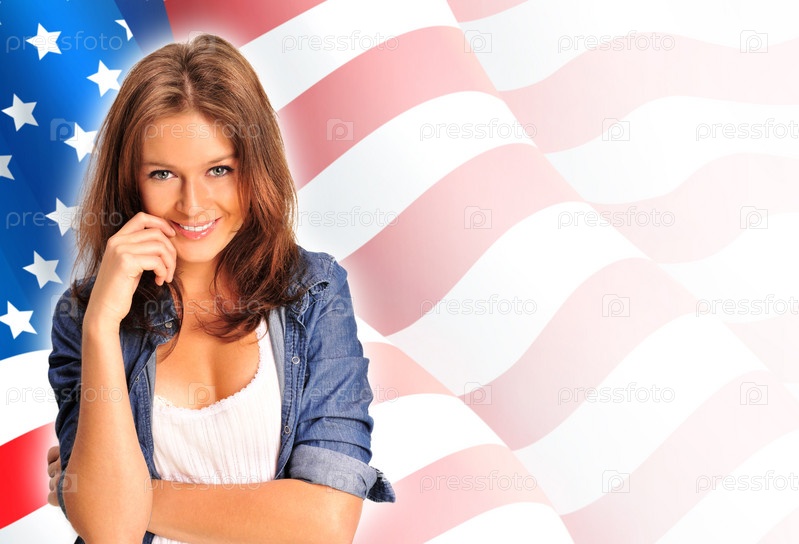 Портрет красивой девушки на фоне американского флага