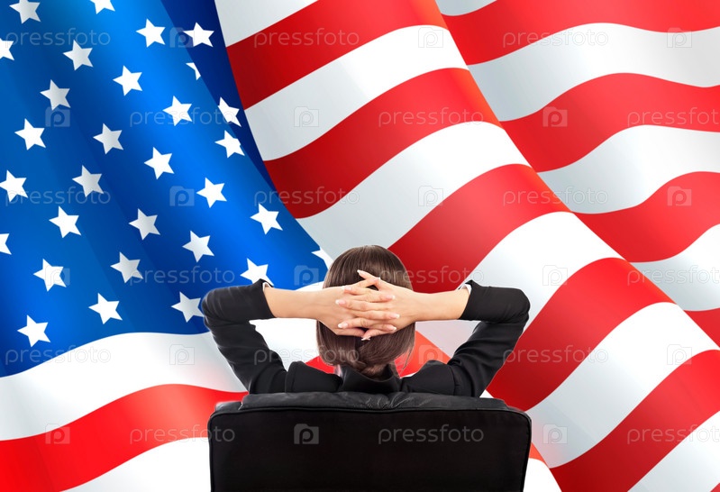 Бизнес-леди напротив американского флага