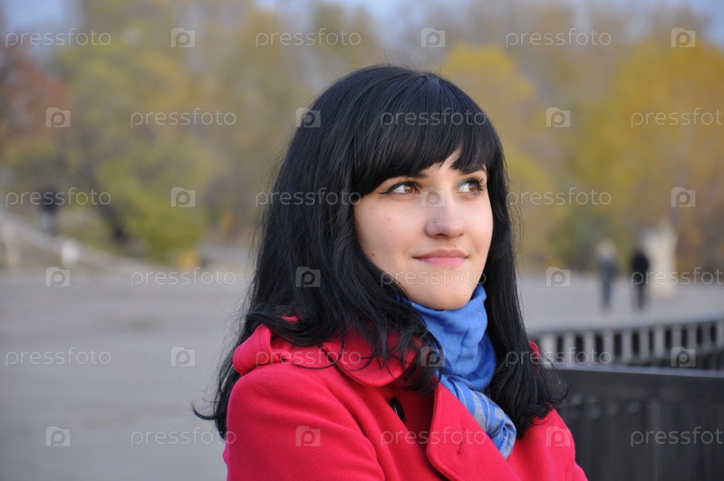 Девушка в красном пальто на открытом воздухе