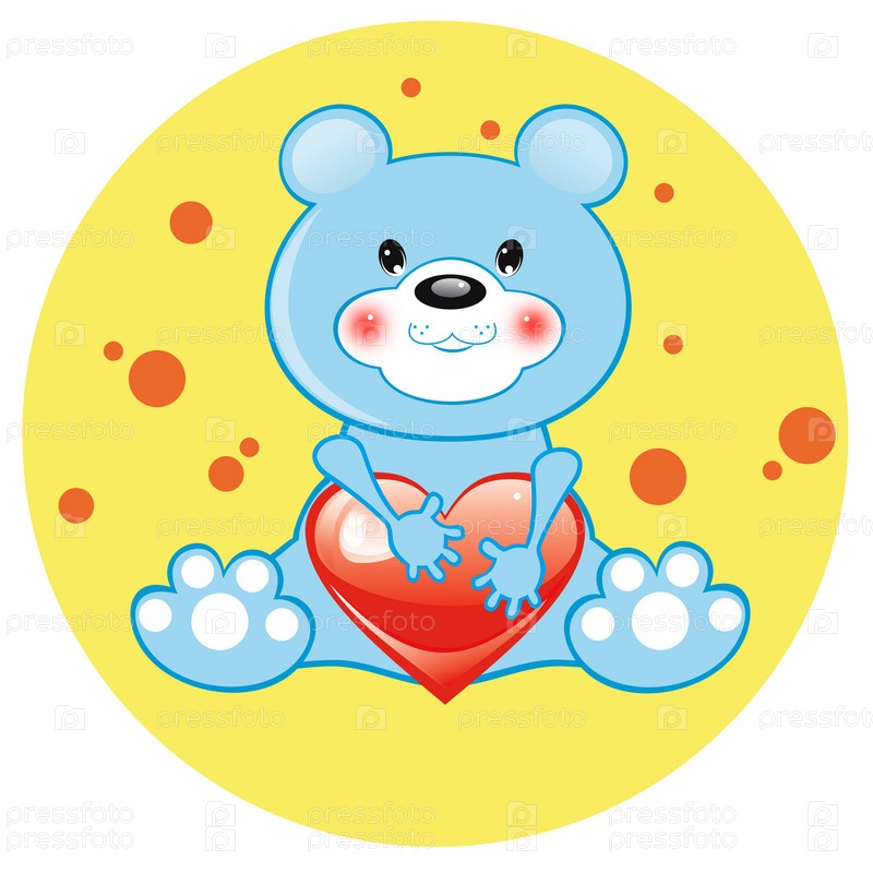 Медвежонок с сердечком, иллюстрация на белом фоне