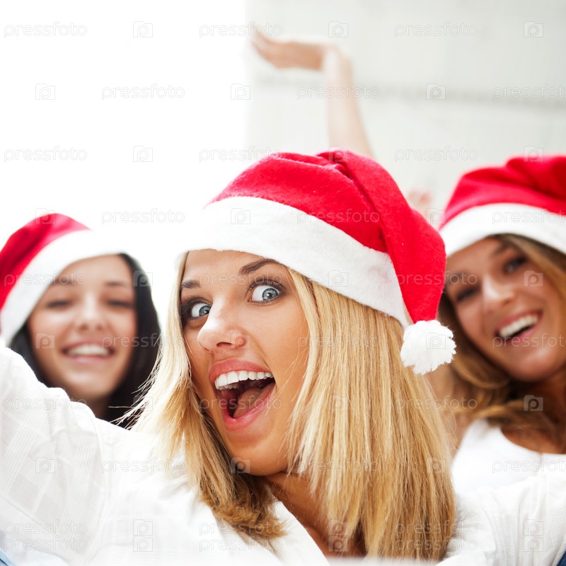 Красивые молодые девушки в новогодних шапках