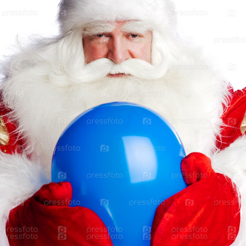 Дед Мороз с воздушным шариком на белом фоне