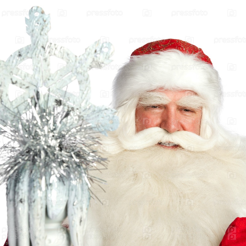Дед Мороз с посохом на белом фоне