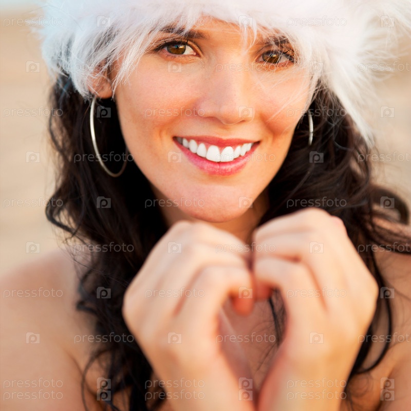 Портрет красивой молодой женщины в новогодней шапке