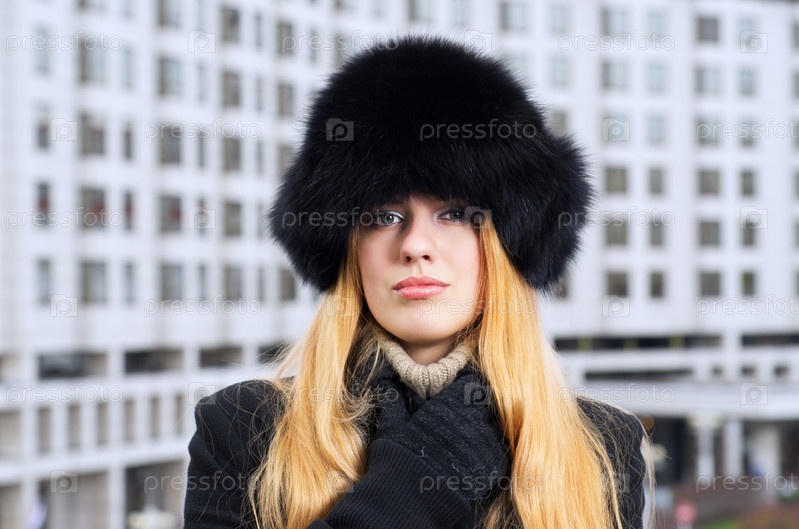 Портрет красивой молодой женщины в меховой шапке