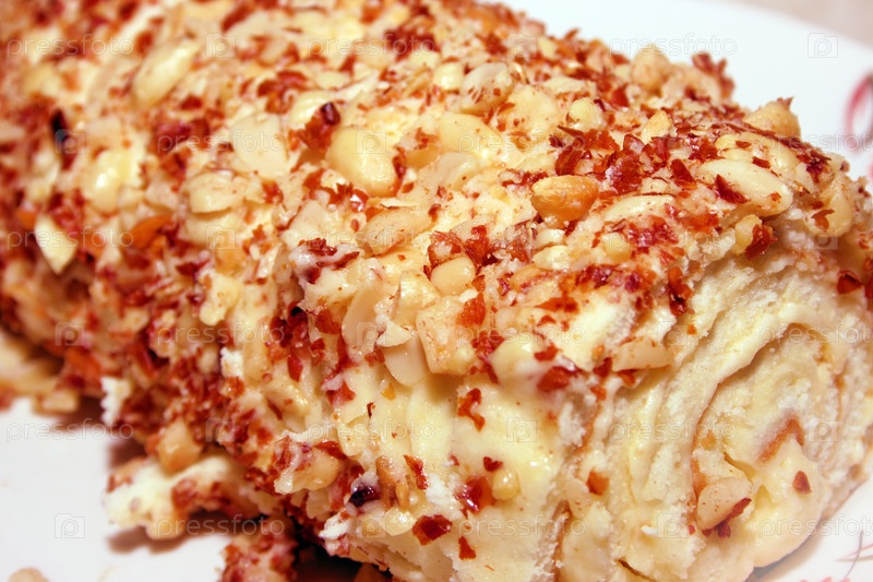 Рулет с орехами крупным планом