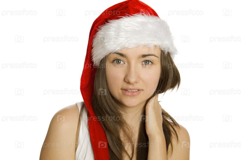 Портрет красивой молодой женщины в новогодней шапке