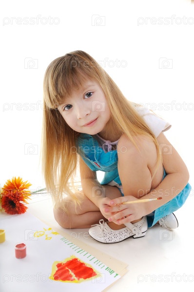Девочка рисует, белый фон