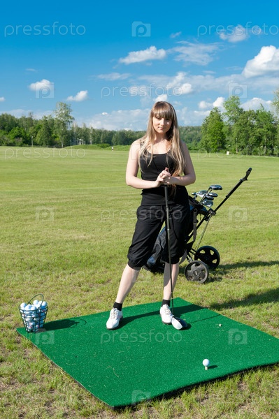 Молодая симпатичная девушка во время игры в гольф