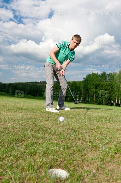 Молодой человек во время игры в гольф