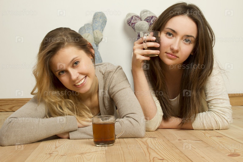 Две молодые красивые девушки с чаем