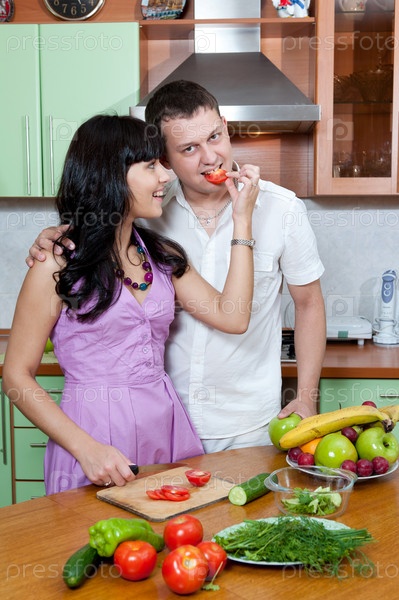 Молодая пара на кухне