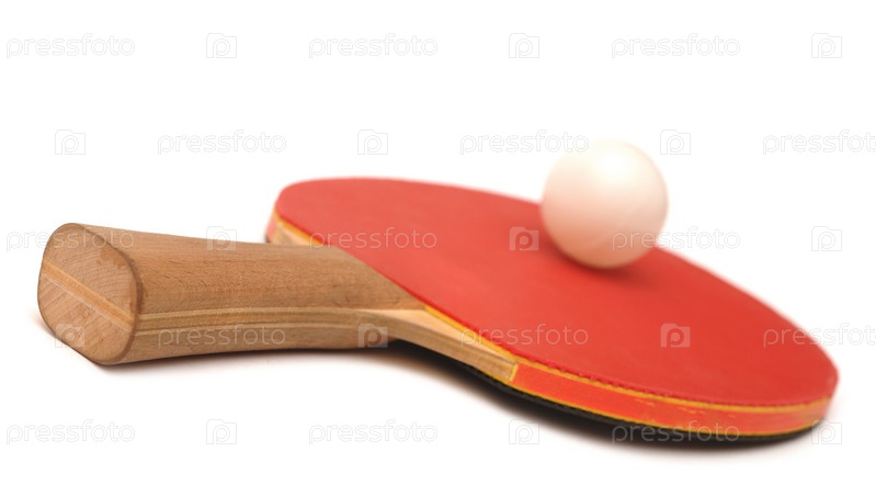 Теннисная ракетка и шарик на белом фоне