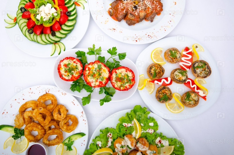 Разные салаты крупным планом