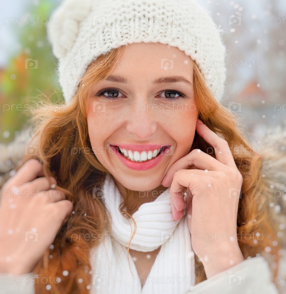 Зимний портрет красивой рыжеволосой девушки