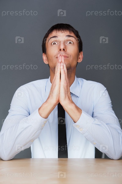 Молодой бизнесмен в умоляющей позе