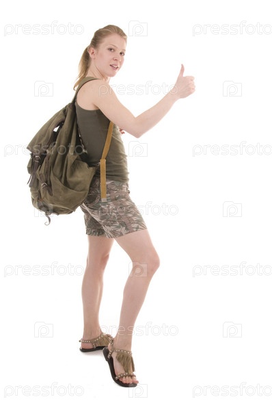 Девушка с рюкзаком на белом фоне