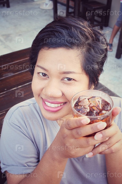 Женщина пьет колу