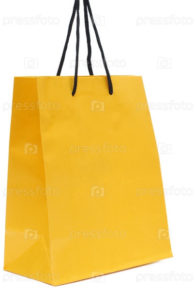 Желтый бумажный пакет на белом фоне