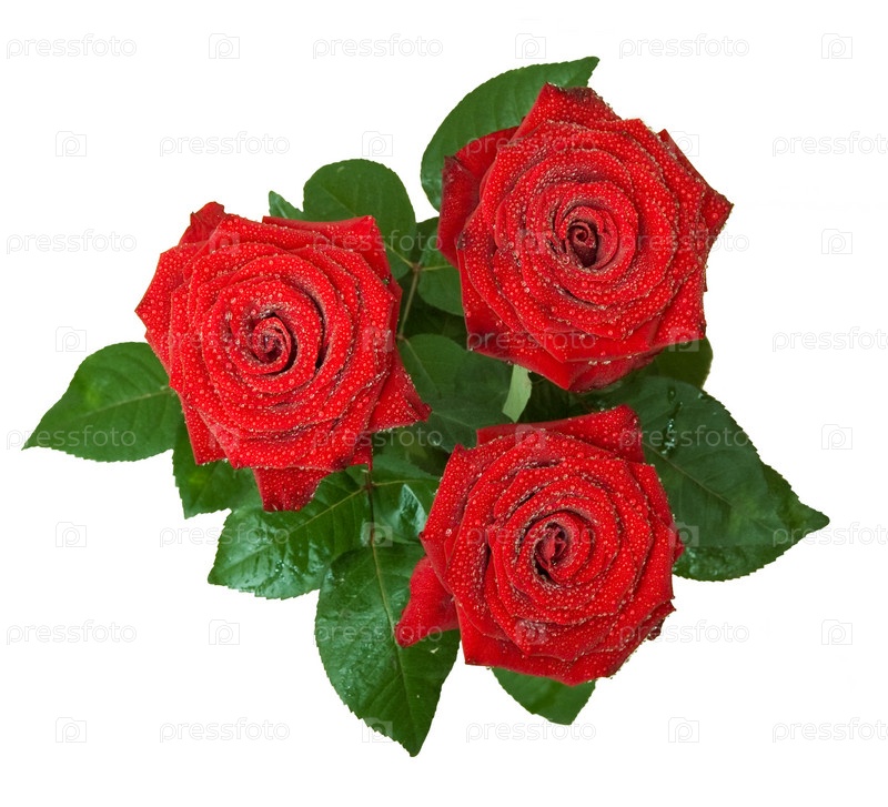 Три красных розы на белом
