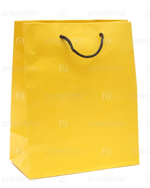 Желтый бумажный пакет на белом фоне