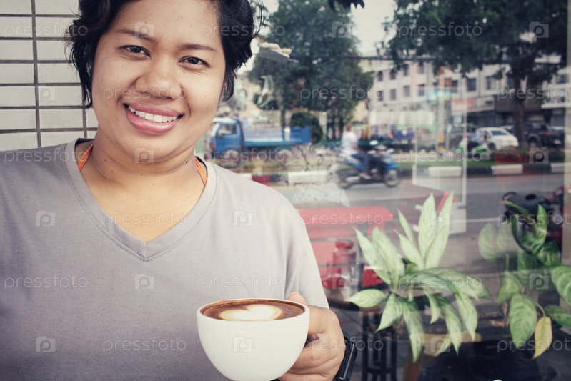 Женщина пьет кофе
