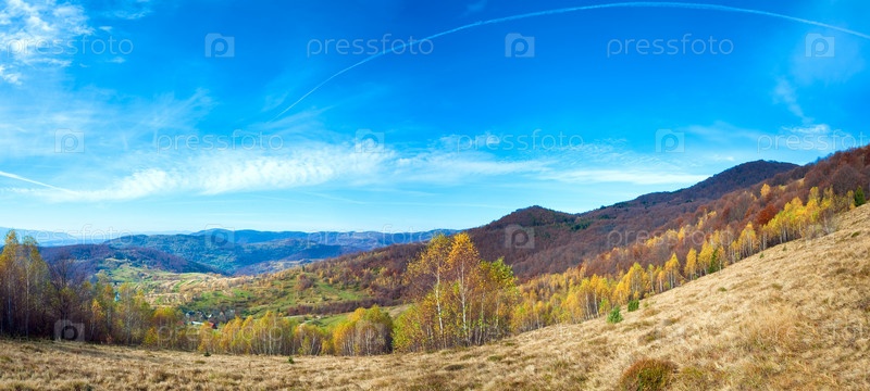 Осенний пейзаж горной местности (Карпаты, Украина). Панорама