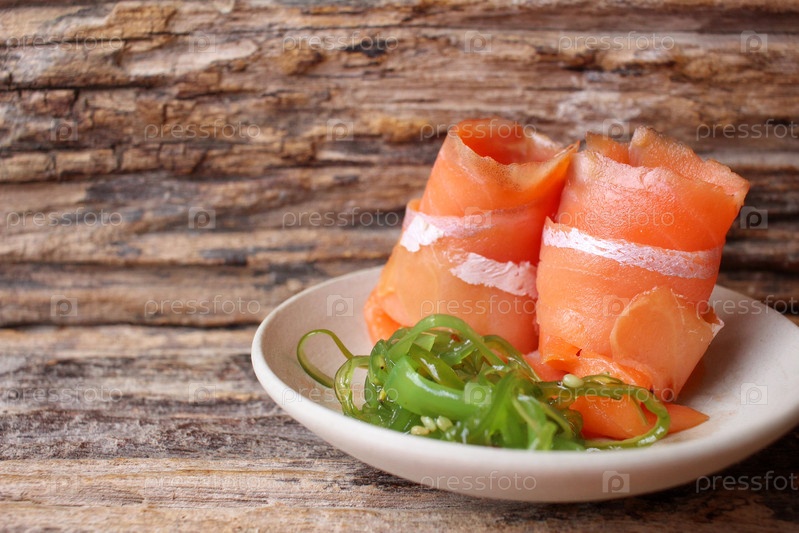 Копченый лосось с салат из морской капусты
